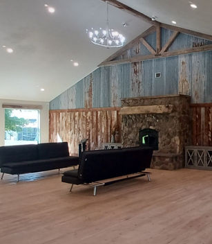 Our "Gathering Hall" was designed with your memory making event in mind, offering space for rehearsal dinners, wedding ceremonies, receptions, reunions and getaways. Because our main gathering hall seats 80-90 people with a beautiful stone hearth, vaulted ceilings, plenty of benches, tables and soft seating, your family and guests can know they're special while the warmth of home abounds. If fancy is your fling, playing dress-up with drapes, french style chandeliers and crystal drop lights can be arranged. We beckoned the natural light to flow through the double south facing windows and added clear glass doors inviting in the fresh mountain air. Big old beams, reclaimed barn wood and corrugated metal from the original barn introduce neutral colors that are timeless and makes it easy to create your dream wedding. Many memories have already been made with our oversized barn doors as the ultimate photo backdrop. We knew that dancing can be the language of love so we personally nailed down a Montana rough sawn Douglas Fir floor making "rustic" romantic and fun. We are the perfect balance of something old and something new. Whether you're reason is an "I DO" to start your family, an "ALL in the FAMILY" sleepover or an eightieth birthday party, we've saved you time and effort by repurposing the dairy farm into the picture perfect gathering place for family and friends. Time and family is precious so spend it with us. Bloomington Family Retreat...Because Families are the Reason.